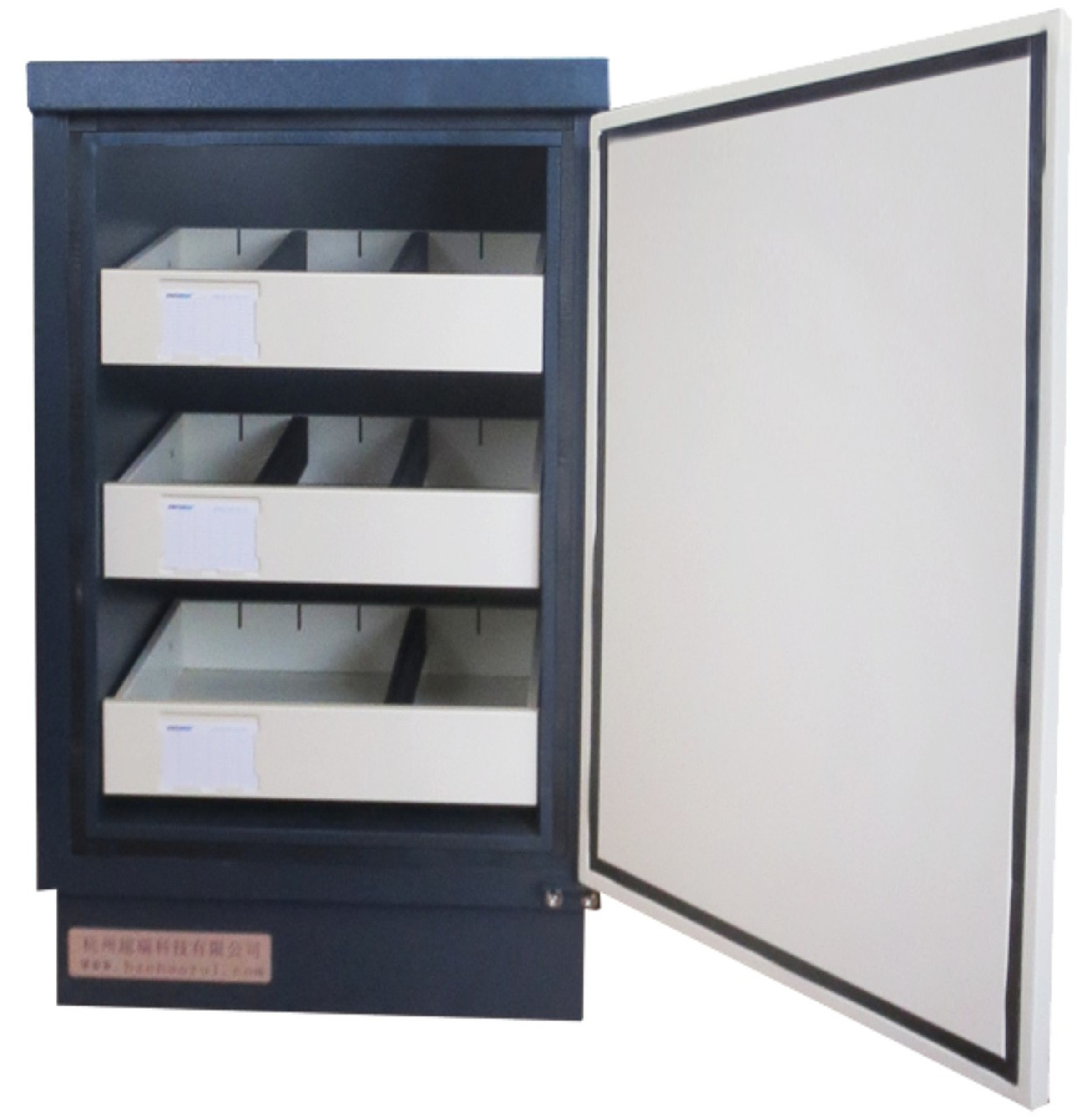 (2)防磁柜內置吸濕劑,且密封性能良好,當環境濕度較高時庫房內還應配備去濕裝置。